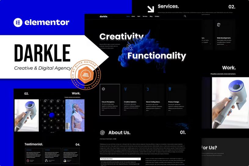 Don’t miss out on the opportunity to build a truly remarkable website that drives results. Darkle – Creative & Digital Agency Elementor Template Kit is your key to unlocking a professional, engaging, and conversion-focused online platform. Experience the ease of customization, the beauty of a premium design, and the power of a website built for success. Get Darkle today and transform your digital agency’s online identity!
