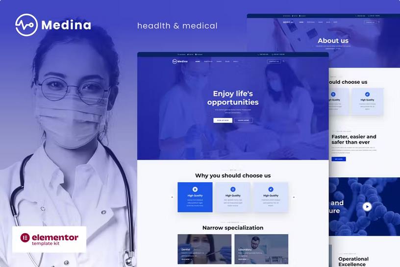 ⚡Medina – Medical & Health Elementor Template Kit Overview
