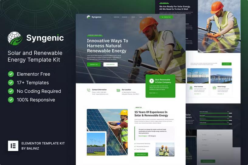Introducing Syngenic – Solar & Renewable Energy Elementor Template Kit, your ultimate solution for creating a stunning and professional website for solar energy, renewable energy companies, sustainable technology, and eco-friendly businesses. This comprehensive kit is meticulously designed to showcase your services, projects, and commitment to a greener future with a modern, clean, and highly engaging aesthetic. Built exclusively for Elementor, Syngenic offers unparalleled ease of use, allowing you to craft a visually captivating online presence without writing a single line of code. Elevate your brand and attract more clients by presenting your renewable energy solutions with clarity and impact.