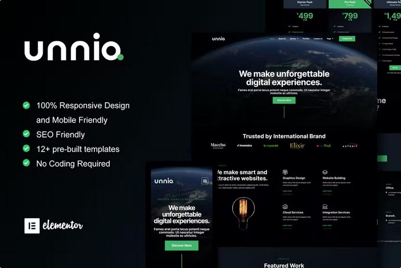 Elevate your digital agency’s online presence with Unniq – Dark Digital Creative Agency Elementor Template Kit. This powerful kit offers a stunning dark aesthetic, intuitive Elementor integration, and a suite of professionally designed pages that will captivate your audience. Showcase your agency’s talent and services with unparalleled visual appeal and ease of customization. Unlock the potential to attract more clients and solidify your brand’s sophisticated image.