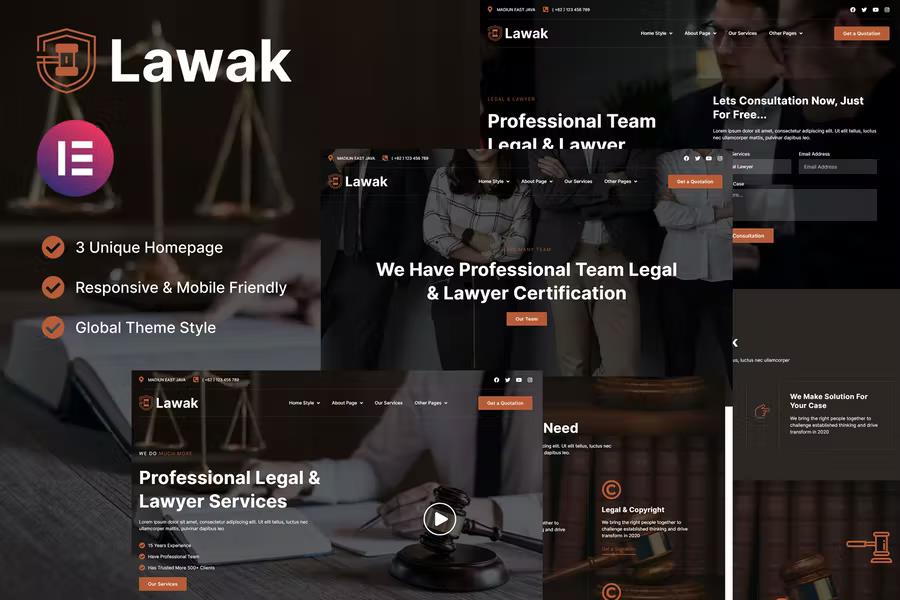 Elevate your legal practice’s online presence with Lawak – Legal & Lawyer Services Elementor Template Kit. This comprehensive solution offers a professional, modern, and conversion-focused design that instills trust and attracts clients. Showcase your expertise, highlight your services, and build credibility with beautifully crafted pages and intuitive customization powered by Elementor.