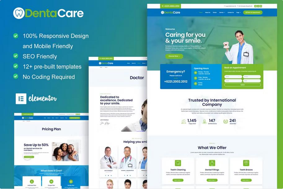 Leverage the power of Elementor and DentaCare to build a responsive, mobile-friendly website that looks impeccable on any device. Save time and resources with pre-designed pages and sections, all fully customizable to match your brand’s unique identity. Invest in a website that truly represents the quality of care you provide and watch your patient engagement soar. DentaCare is your all-in-one solution for a modern, effective, and beautiful medical website.