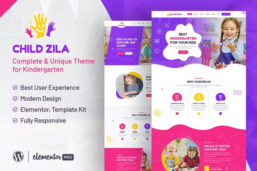 Give your kindergarten or childcare center the online presence it deserves with ChildZilla – Kindergarten & Childcare Elementor Template Kit. This powerful toolkit empowers you to create a stunning, user-friendly, and professional website that will capture the attention of prospective parents and showcase the exceptional care and education you provide. With its vibrant design and intuitive customization, ChildZilla is the perfect solution for quickly launching a high-converting website that reflects the warmth and trustworthiness of your institution.