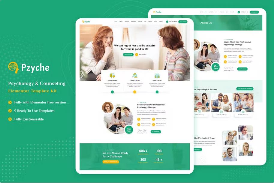 Choosing Pzyche means investing in a comprehensive and efficient solution. Skip the complexities of custom coding and expensive development. This kit provides everything you need – from beautifully crafted pages to essential functionalities – all within a drag-and-drop interface. It’s the perfect choice for psychologists, therapists, and counseling centers looking to establish a credible and accessible online platform quickly and affordably. Experience the ease of customization and the impact of a professionally designed website that drives client engagement and growth.