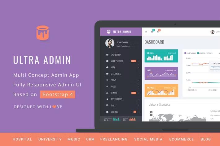 Elevate your web application’s backend with Ultra – Multi Purpose Admin Theme, a sophisticated and highly versatile HTML template designed for modern administrative interfaces. Built with the robust Bootstrap framework, Ultra offers a clean, intuitive, and responsive design that ensures a seamless user experience across all devices. Whether you’re developing a CRM, a project management tool, an e-commerce dashboard, or any other data-driven application, Ultra provides the perfect foundation with its extensive array of pre-built components and customizable layouts.