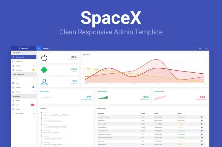 Take control of your web application’s backend with SpaceX – Bootstrap Admin Template. This premium HTML template offers a powerful, responsive, and visually appealing foundation for any administrative dashboard. With its extensive collection of pre-built components, versatile layouts, and cutting-edge Bootstrap 4 framework, you can build sophisticated interfaces that streamline operations and enhance user productivity. Unlock the potential of your data with dynamic charts, interactive tables, and intuitive navigation.