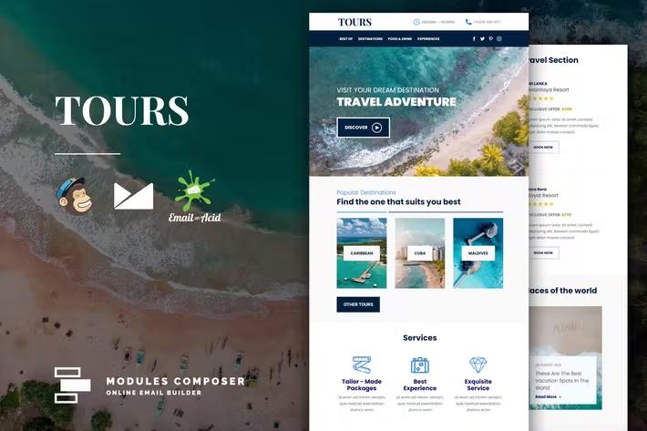 A: Yes, as an HTML template, Tours is designed to be compatible with virtually all major email marketing services like Mailchimp, Sendinblue, ActiveCampaign, and more. You can import the HTML code directly.Q: Can I use the online builder with this template if I don’t have an account with a specific provider?