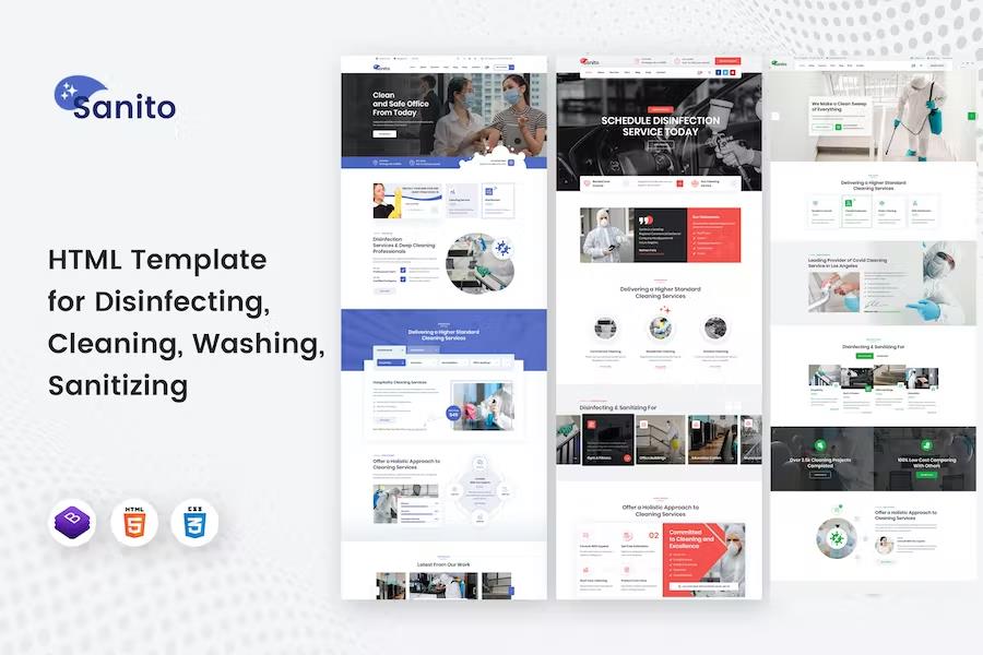 Introducing Sanito – Sanitizing and Cleaning HTML Template, your premier solution for building a professional and trustworthy online presence for your cleaning and sanitization services. This meticulously crafted HTML template is designed to impress potential clients from the very first click, showcasing your expertise in hygiene, disinfection, and general cleaning services. With its clean, modern aesthetic and intuitive navigation, Sanito ensures a seamless user experience across all devices, making it easy for customers to find the information they need and book your services.