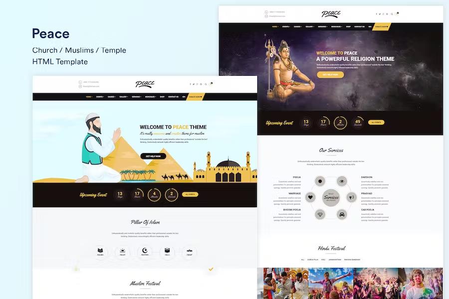 Introducing Peace – Church Muslims Temple HTML Template, a meticulously crafted and versatile HTML template designed to serve the unique needs of religious institutions. Whether you’re building a website for a church, mosque, temple, or any place of worship, this template offers a harmonious blend of spiritual aesthetics and modern functionality. With its clean, intuitive design and a focus on user experience, Peace ensures your online presence reflects the serenity and community spirit of your organization.