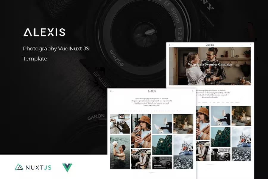 Elevate your photography business with Vuejs Photography Website Template using Nuxt JS – Alexis. This premium HTML Template offers a seamless blend of stunning design and cutting-edge technology, ensuring your work is presented in the most captivating way possible. By choosing Alexis, you’re investing in a fast, responsive, and highly customizable platform that will impress potential clients and make your portfolio unforgettable. Experience the power of Vue.js and Nuxt.js combined with an elegant aesthetic designed specifically for photographers.