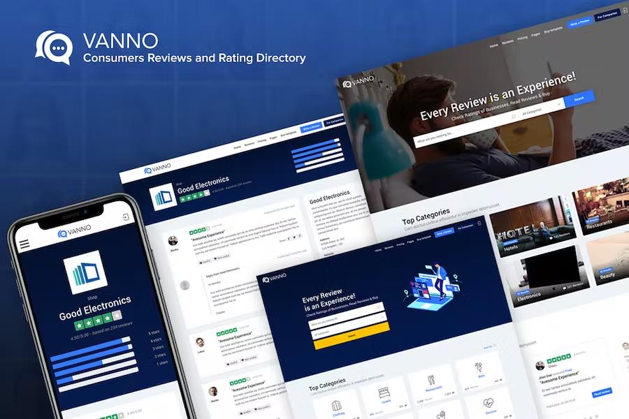 Introducing Vanno – Consumers Reviews and Rating Directory, a sophisticated and versatile HTML template meticulously crafted for building robust review and rating platforms. Whether you’re looking to create a niche review site, a comprehensive directory of local businesses, or a platform for user-generated content, Vanno provides the perfect foundation. Its clean, modern design and intuitive layout ensure a seamless user experience, encouraging engagement and trust.