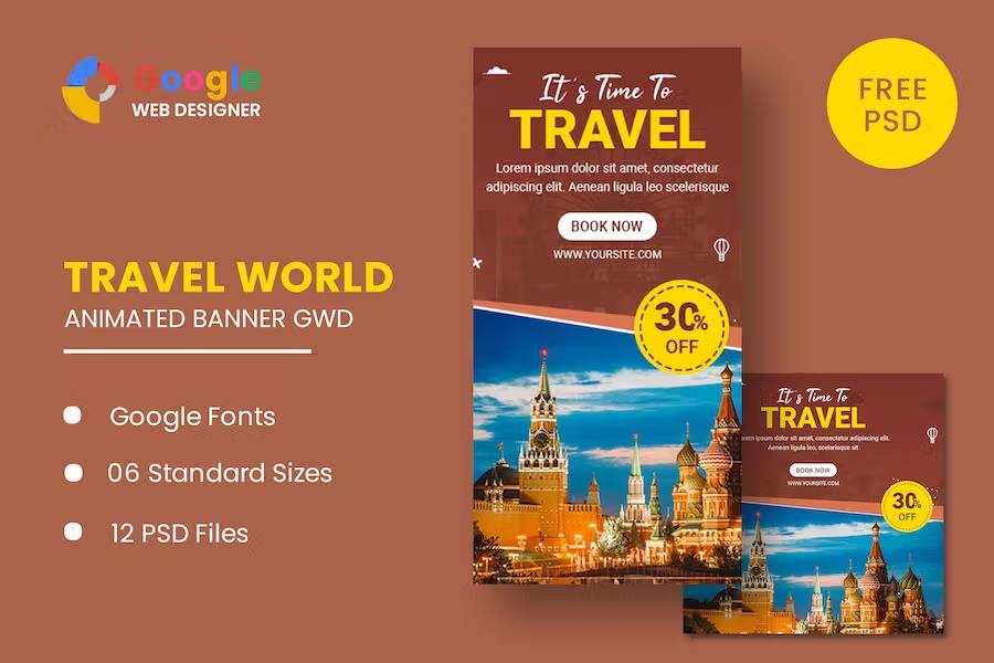 Elevate your travel promotions with the Travel Animated Banner Google Web Designer, a dynamic and eye-catching HTML template designed to captivate your audience. This expertly crafted banner showcases stunning travel destinations with smooth, engaging animations, perfect for travel agencies, tour operators, and travel bloggers looking to boost engagement and drive bookings. Built using Google Web Designer, this template offers unparalleled flexibility and professional polish, ensuring your advertisements stand out in a crowded digital landscape.