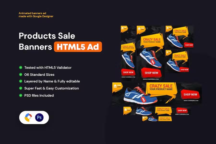 Don’t miss this opportunity to supercharge your sales and enhance your website’s visual appeal. The Product Sale Banners HTML5 Ad is your key to creating compelling promotional campaigns that deliver tangible results. Add this essential HTML5 template to your toolkit today and start turning your website visitors into loyal customers!