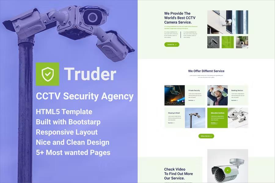 A: Absolutely. While designed with CCTV in mind, Truder’s versatile structure and clean design allow you to effectively showcase a wide range of security services, including alarm systems, monitoring, consulting, and private security personnel.Q: Can I customize the colors and fonts to match my brand?
