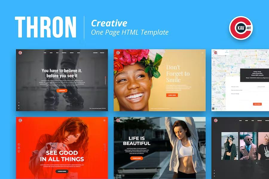 Elevate your online presence with Thron – Creative One Page Template. This meticulously designed HTML template offers a stunning visual experience, perfect for showcasing portfolios, agencies, or startups. With its fully responsive design and smooth animations, Thron ensures your content captivates visitors across all devices, making a powerful first impression and driving engagement.