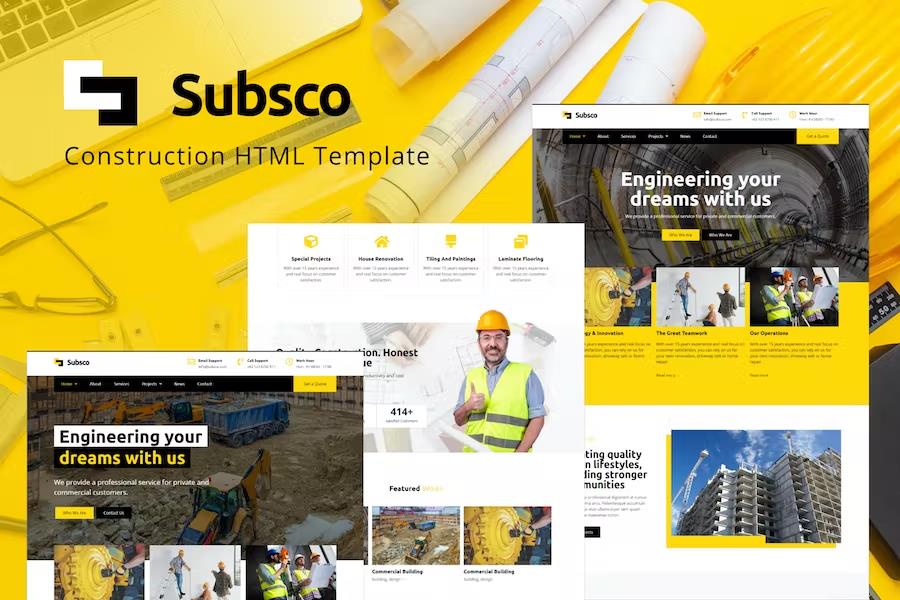 Make a powerful first impression and stand out from the competition. Subsco provides the ultimate solution for construction companies looking to enhance their brand image and attract more business. Get started today and experience the transformative impact of a professionally designed, high-performing HTML template.