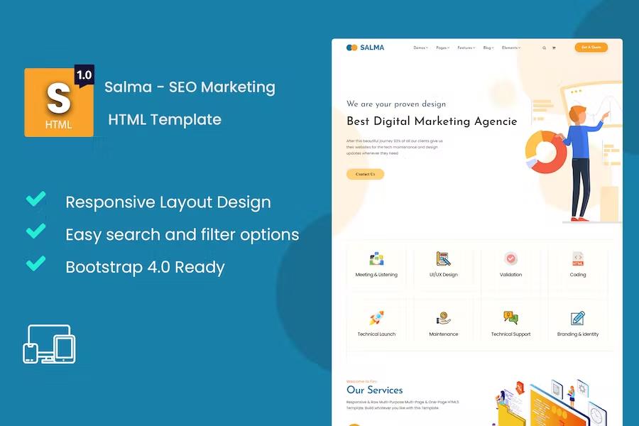 A: While Salma is specifically designed for SEO and digital marketing, its clean, modern, and responsive design can be adapted for various business types that require a professional online presence and lead generation focus.Q: Can I integrate Salma with a Content Management System (CMS) like WordPress?