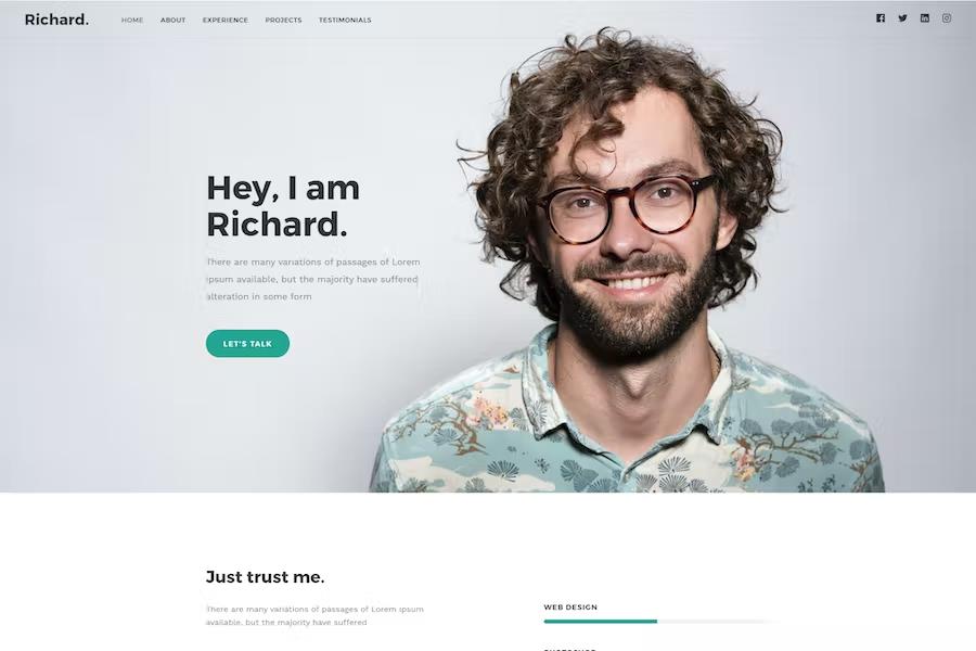 💬 “The attention to detail in the Richard template is impressive. The smooth scrolling and modern design elements give my personal brand a sophisticated edge. Highly recommended for anyone looking for a professional online presence.” – David L., Web Developer