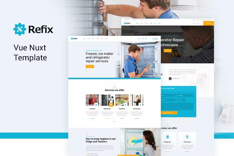 Are you looking to establish a powerful and professional online presence for your fridge and freezer repair business? Look no further than Refix – Vue Nuxt Fridge & Freezer Repair Company Template. This expertly designed HTML template leverages the cutting-edge capabilities of Vue.js and Nuxt.js to deliver an incredibly fast, responsive, and modern website experience. Showcase your services, build trust with potential clients, and streamline your booking process with a design that’s as efficient as it is elegant. Boost your conversions and make a lasting impression with a template built for success.