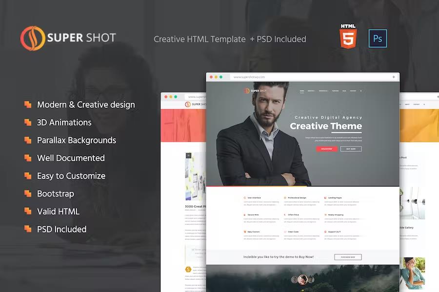 Don’t miss out on the opportunity to build a website that stands out from the crowd. Invest in SuperShot – Creative HTML Template today and unlock the full potential of your online brand. Experience the difference that a thoughtfully designed, feature-rich, and highly customizable template can make to your success. Get SuperShot now and start creating!