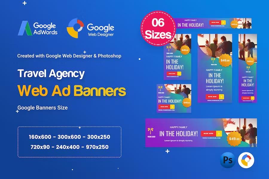Unlock the potential of your digital advertising with these versatile and high-converting banner templates. With easy-to-edit files and a focus on visual appeal, you can quickly create a cohesive and compelling advertising strategy that drives bookings and grows your travel business. Invest in the Travel Agency Banners Ad D57 – GWD & PSD and make every click count.