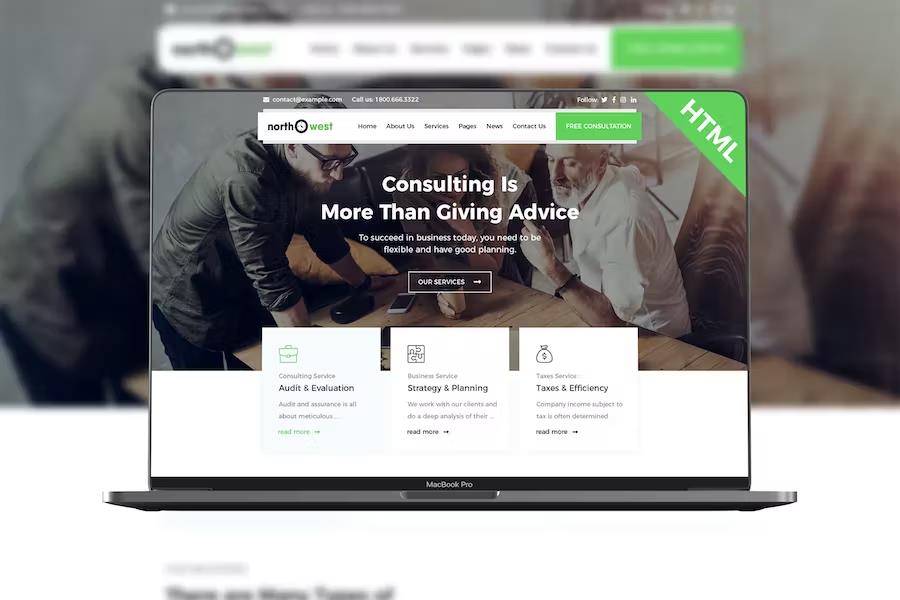 A: Absolutely! The Northwest template features a versatile and professional design that is ideal for a wide range of consulting services, including financial, business, IT, marketing, legal, and HR consulting. Its clean aesthetic and customizable sections ensure it can be adapted to any niche.Q: What technologies are used in this HTML template?