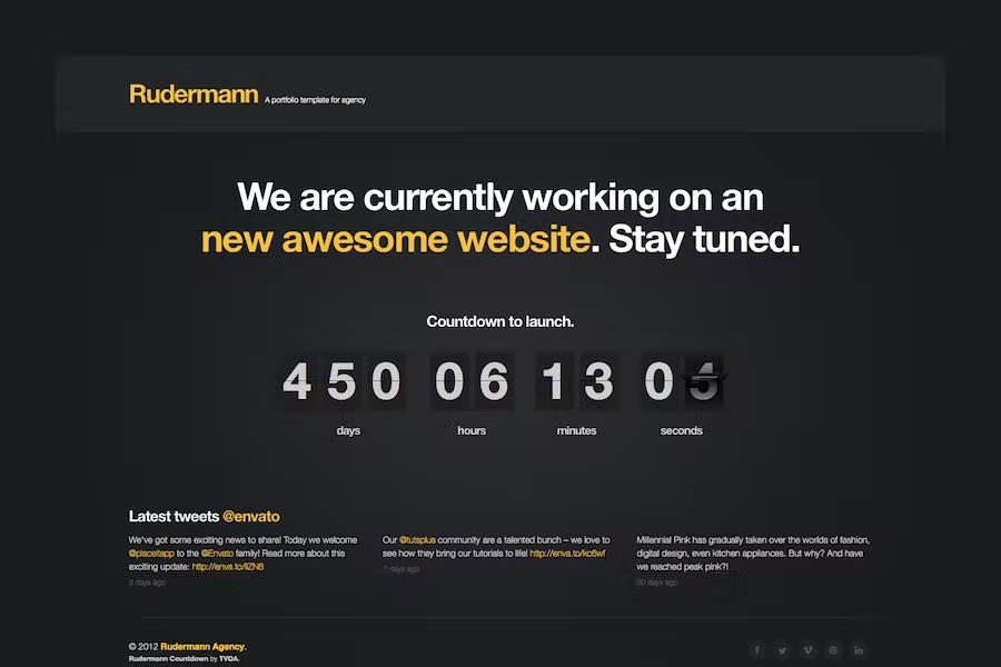 Choosing Rudermann Countdown is choosing a seamless and elegant pre-launch experience. Its fully responsive design guarantees your page looks perfect on any device, while the easy customization options allow you to effortlessly align it with your brand identity. Don’t let your website development phase be a silent period; leverage this template to build momentum and connect with your audience before you even go live.