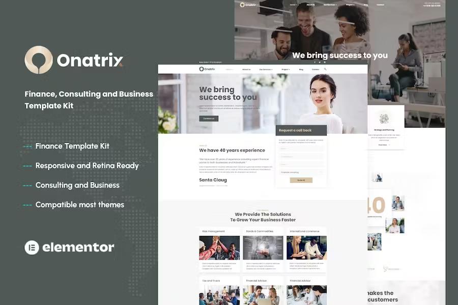 Elevate your online presence with Onatrix – Finance Consulting & Business Elementor Template Kit. This comprehensive package offers a suite of professionally designed pages and customizable elements, perfect for financial advisors, business consultants, and any firm aiming for a sophisticated and trustworthy digital footprint. Unlock the power of Elementor’s drag-and-drop editor to effortlessly craft a website that not only looks stunning but also drives conversions, showcasing your expertise with impactful service displays and compelling client testimonials.