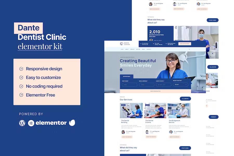 Don’t let an outdated or uninspired website hold your practice back. Make a powerful first impression and drive more patient bookings with the Dante – Dentist & Dental Clinic Elementor Template Kit. It’s time to elevate your brand, connect with more patients, and experience the transformative impact of a truly professional digital presence. Get started today and build the dental website your practice deserves!