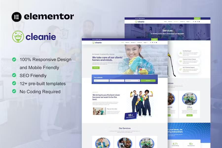 A: Cleanie is designed to be compatible with most well-coded WordPress themes. For the best results and to avoid potential styling conflicts, it’s recommended to use a lightweight and flexible theme like Hello Elementor or a theme known for its Elementor compatibility.Q: Do I need Elementor Pro to use this template kit?