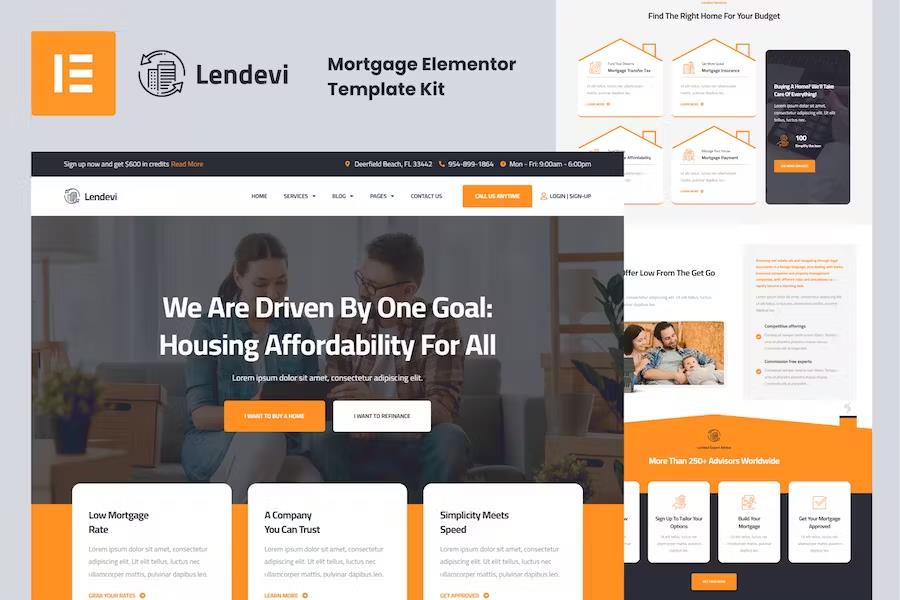 Unlock the full potential of your mortgage business with Lendevi – Mortgage Elementor Template Kit. This comprehensive package offers a professional, conversion-focused design that will instantly elevate your online presence. Showcase your services with clarity, build trust with compelling testimonials, and make it effortless for clients to connect with you, all thanks to the intuitive drag-and-drop functionality of Elementor.