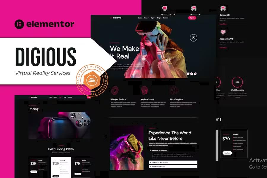 Make a powerful first impression and drive tangible results. Choose Digious – Virtual Reality Services Elementor Template Kit to elevate your brand, simplify your web development, and unlock your business’s full potential. It’s time to build a website that’s as revolutionary as the technology you provide. Get Digious today and start creating an unforgettable online experience for your clients!