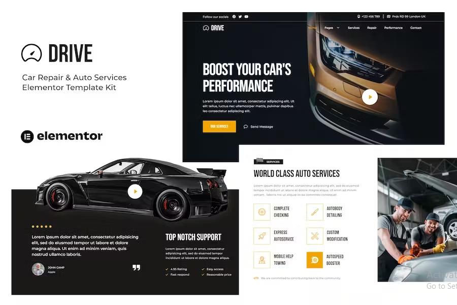 Don’t let a mediocre website hold your business back. Drive – Car Repair & Auto Service Elementor Template Kit provides the perfect blend of aesthetics, functionality, and ease of use. Get started today and experience the transformative impact of a professionally designed website that truly reflects the quality of your automotive services. Your next customer is just a click away!