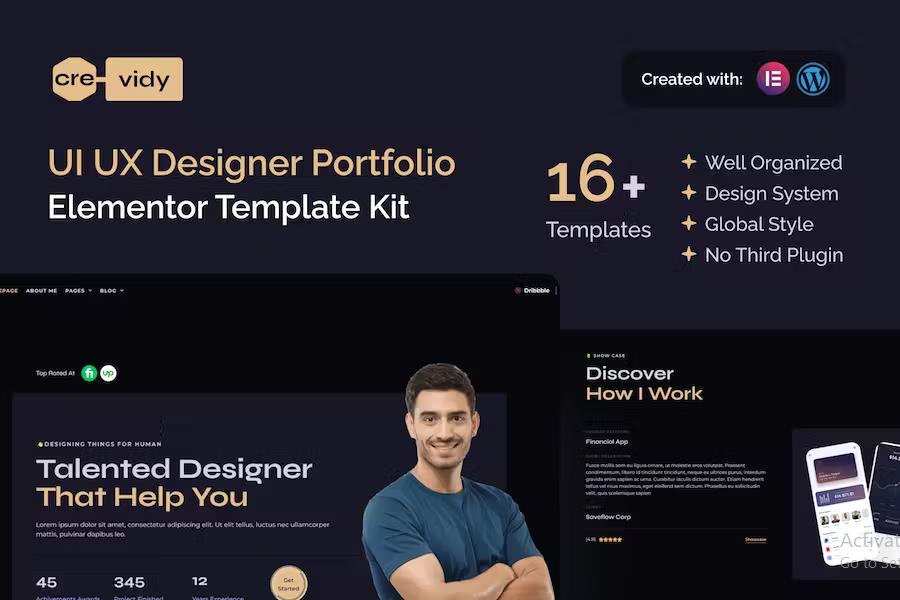 Elevate your online presence with Crevidy – UI UX Designer Portfolio Elementor Pro Template Kit, the ultimate solution for showcasing your creative talent. Designed specifically for UI/UX designers, this comprehensive kit provides everything you need to build a stunning, professional portfolio website that captivates potential clients and employers. With its sleek, modern aesthetic and intuitive drag-and-drop functionality powered by Elementor Pro, you can effortlessly craft a visually appealing and highly functional website without writing a single line of code.