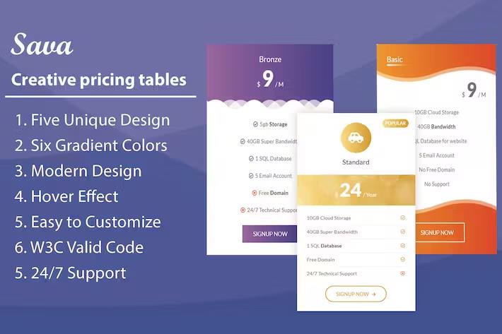 A: No. Sava is a complete HTML and CSS template. You only need a web server and basic HTML/CSS knowledge to implement and customize it. No additional plugins or frameworks are required.Q: Can I add more features or sections to the pricing tables?