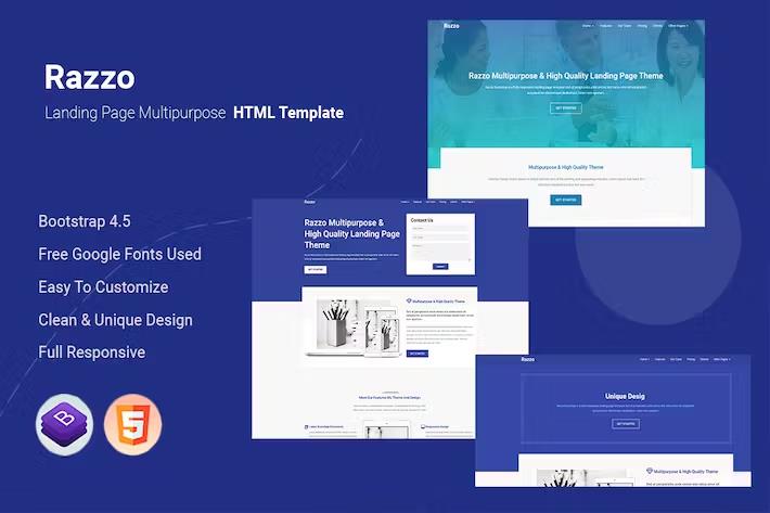 Elevate your online presence with Razzo – Multipurpose Responsive Bootstrap Landing Page. This exceptional HTML template is your key to creating stunning, high-converting landing pages. With its modern design, full responsiveness, and Bootstrap 4 foundation, Razzo ensures your message is delivered flawlessly across all devices, capturing more leads and driving better results.